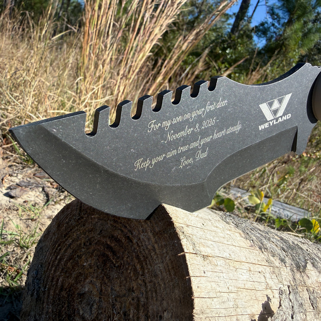 Our **Personalized Engraving Service** offers precise, in-house laser engraving on a variety of items, including knives, tools, and custom gifts. Perfect for creating unique, personalized presents, our state-of-the-art laser technology ensures high-quality, detailed engravings that add a special touch to any item. Whether you're looking to commemorate an occasion or simply add a personal flair, our engraving service is the ideal choice for meaningful, lasting gifts.